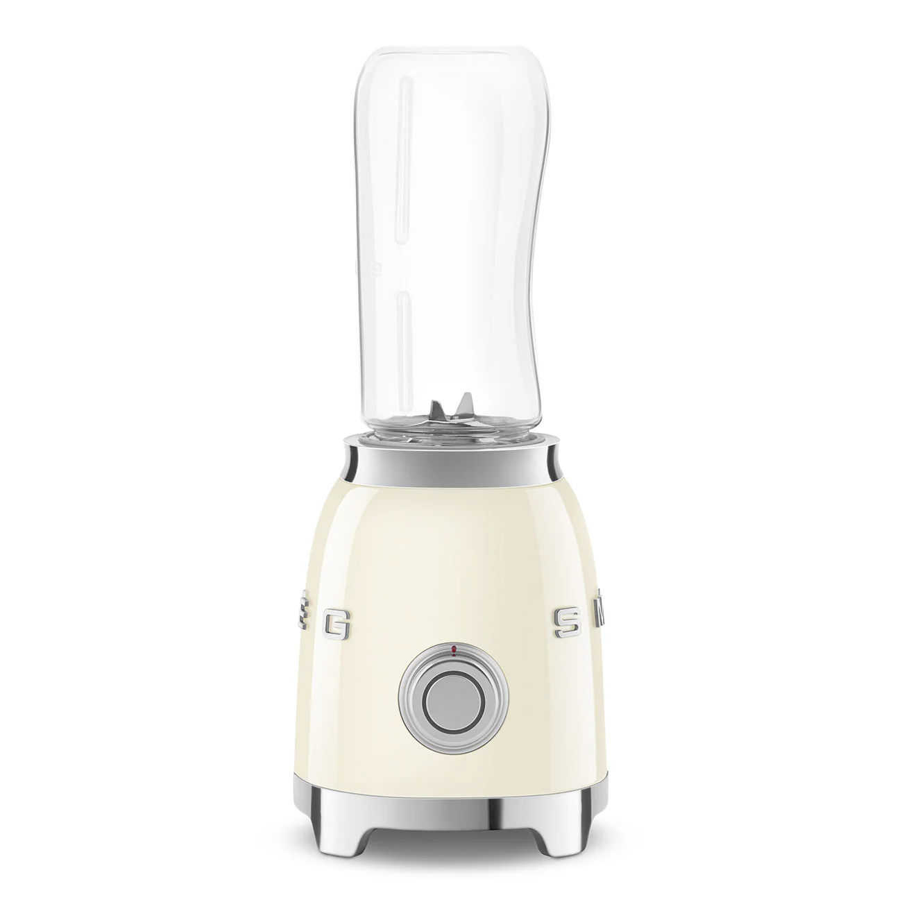 | About This Product | Designed for personal use, the PBF01 is a compact and practical blender perfect for smoothies. Full gloss cream with metallic raised Smeg logo. 300W motor with 2 speeds. Includes 2 bottles to go in Tritan Renew, made of 50% certified recycled material. |