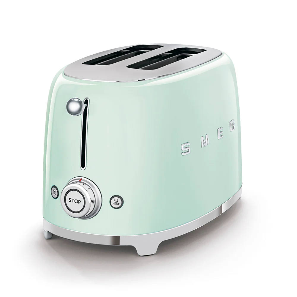 | About This Product | The Pastel Green gloss TSF01 two slot toaster, in classic Smeg 50s style, has compact dimensions and is perfect for any space. 6 different toasting levels and functions, including defrost, reheat and bagel, plus a removable crumb tray. |